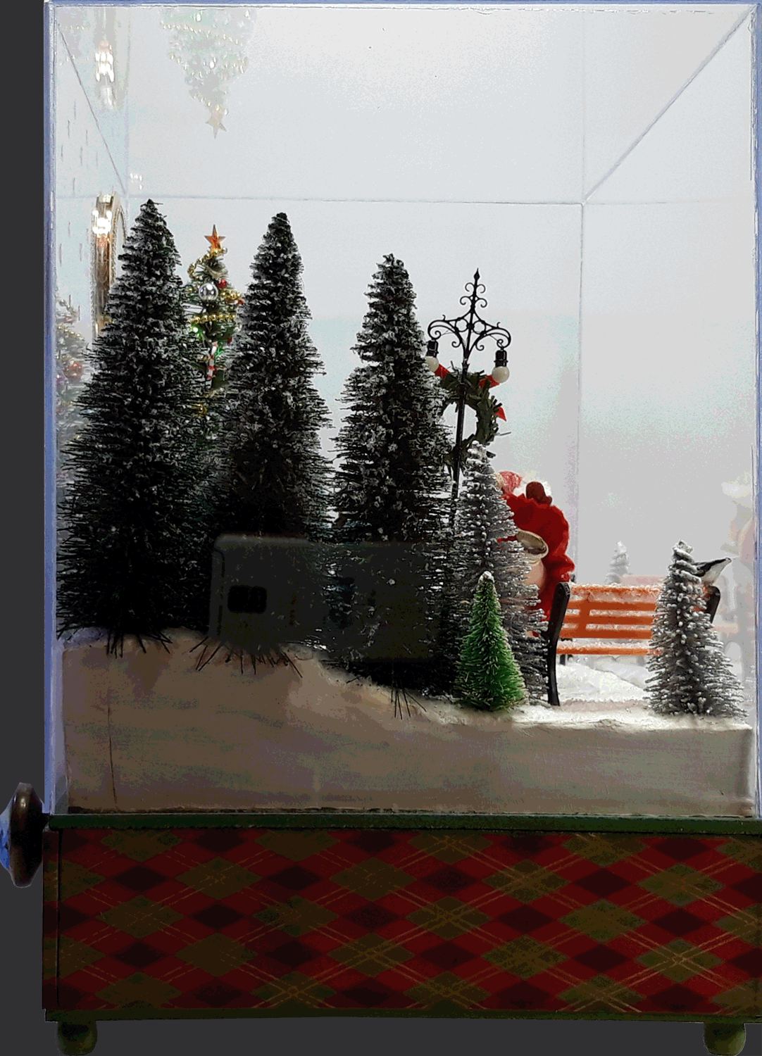 Comes with working clock. Box drawer contains batteries and music chip for easy access. The soundtrack can be easily switched to another of choice via USB cable.
